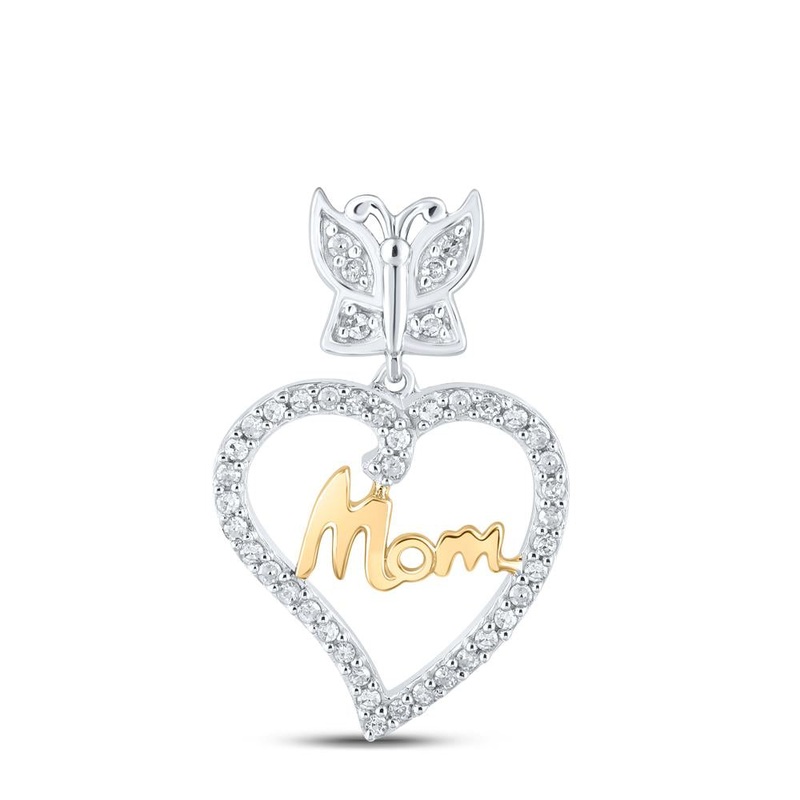 10kt Two-tone Gold Womens Round Diamond Mom Heart Pendant 1/8 Cttw