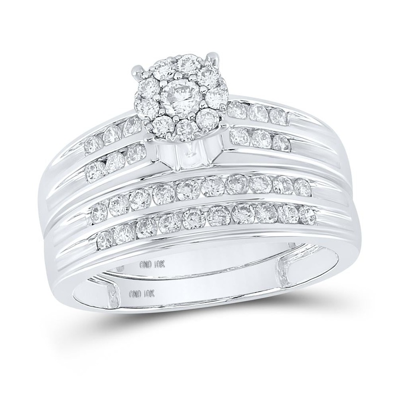 10kt White Gold His Hers Round Diamond Cluster Matching Wedding Set 1-1/5 Cttw