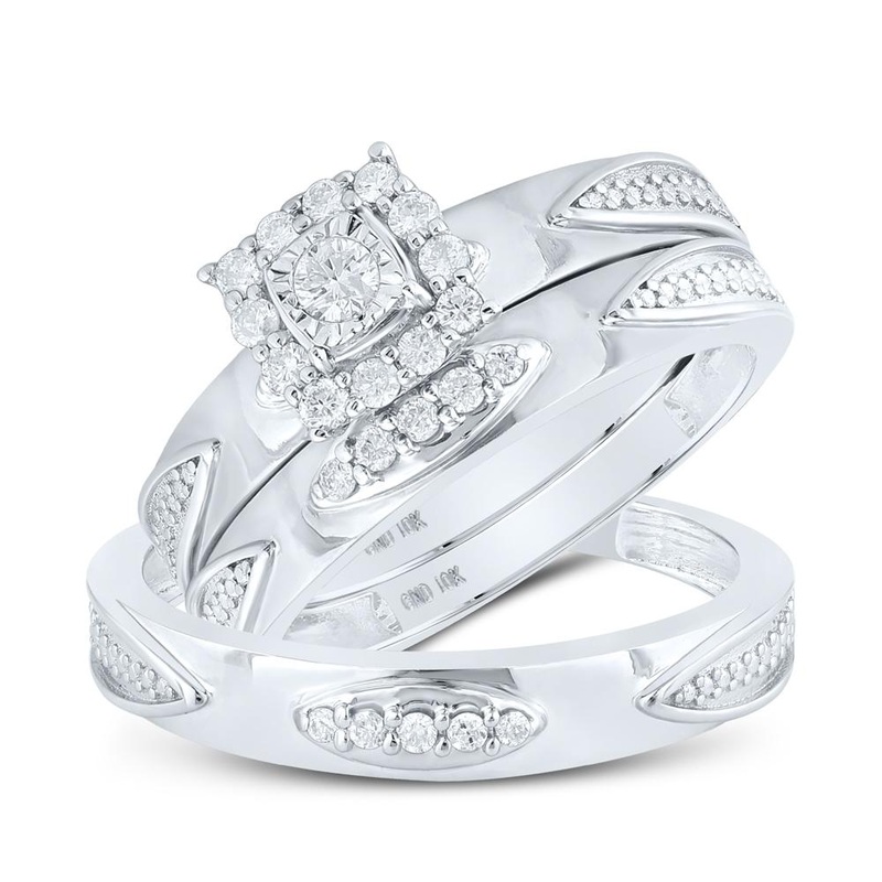10kt White Gold His Hers Round Diamond Square Matching Wedding Set 1/3 Cttw
