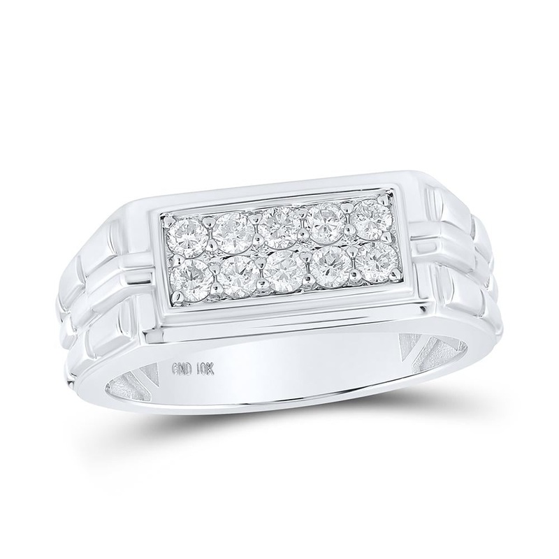 10kt White Gold Mens Round Diamond Band Ring 1/2 Cttw