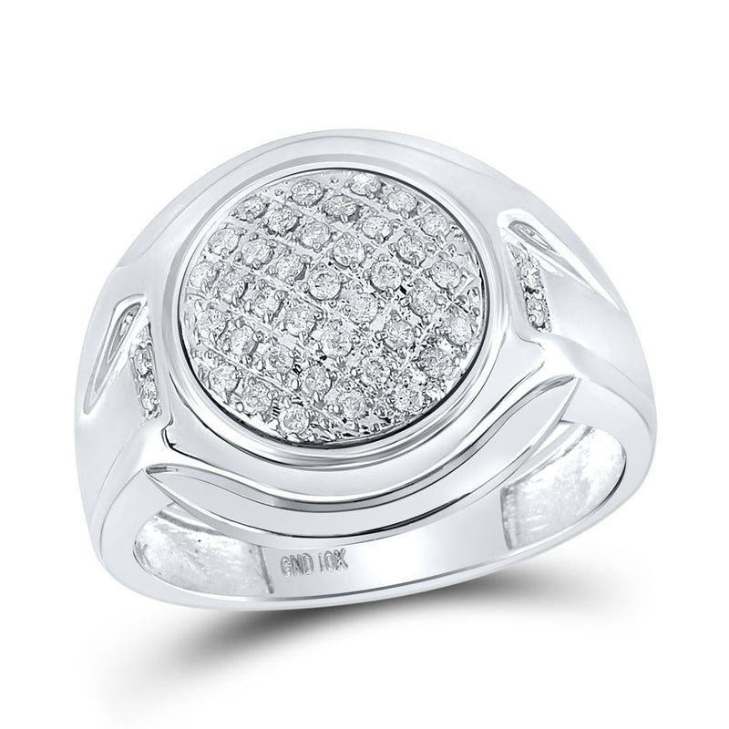 10kt White Gold Mens Round Diamond Circle Cluster Ring 1/3 Cttw
