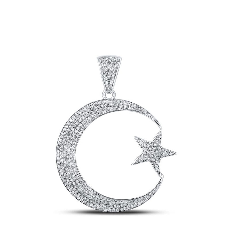 10kt White Gold Mens Round Diamond Crescent Moon Star Charm Pendant 3/4 Cttw