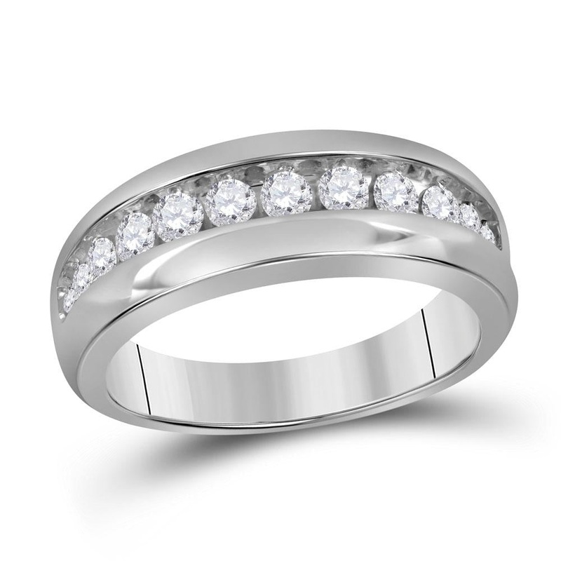 10kt White Gold Mens Round Diamond Single Row Wedding Band Ring 1 Cttw