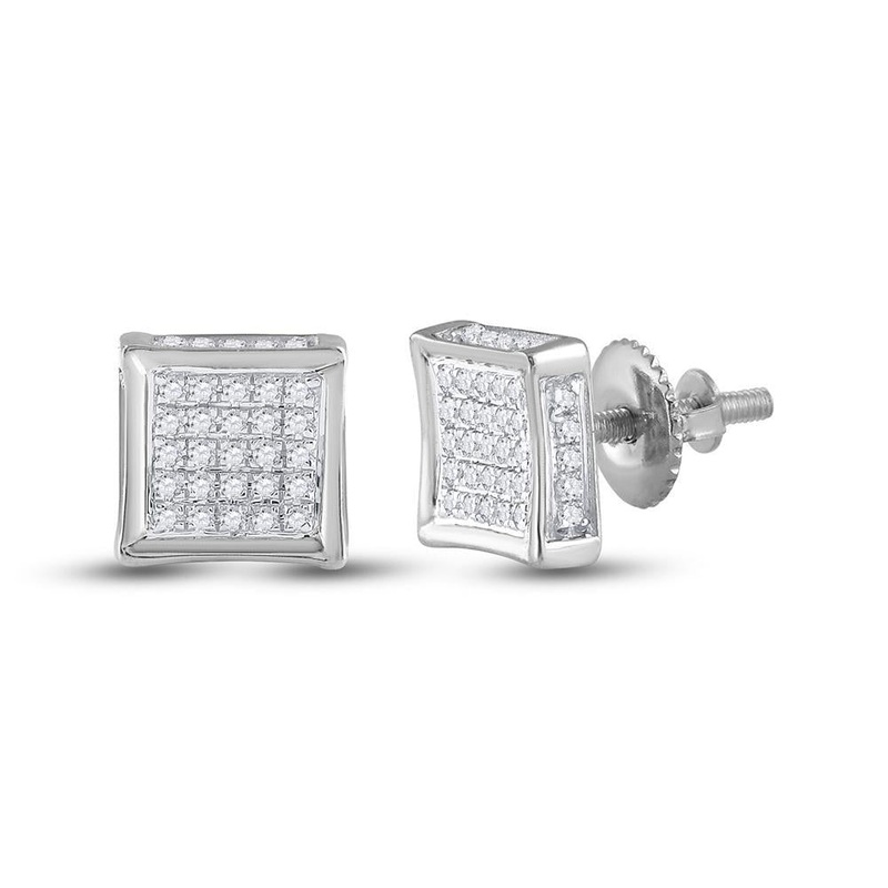 10kt White Gold Mens Round Diamond Square Earrings 1/8 Cttw