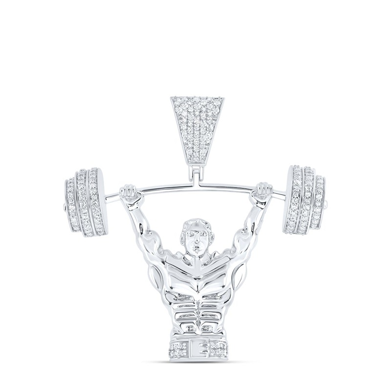 10kt White Gold Mens Round Diamond Weight Lifter Charm Pendant 5/8 Cttw