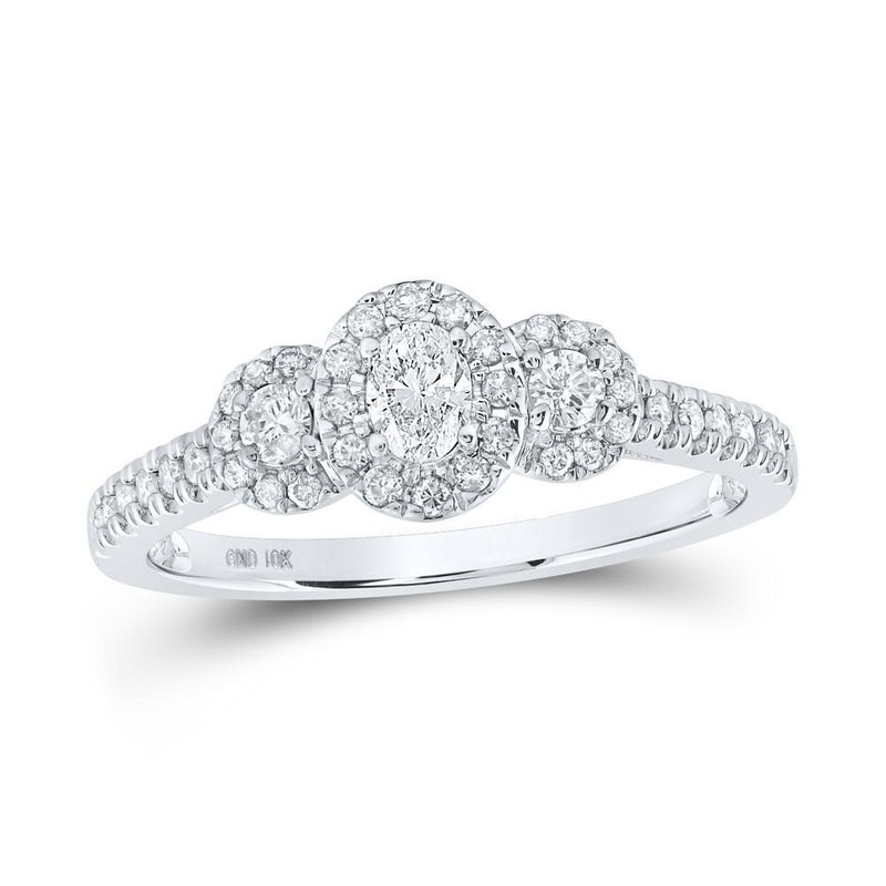 10kt White Gold Oval Diamond 3-stone Bridal Wedding Engagement Ring 1/2 Cttw
