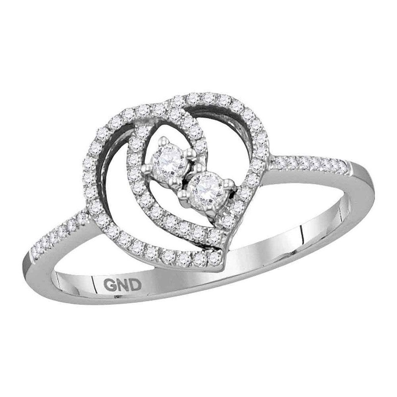 Be the first to review “10kt White Gold Round Diamond 2-stone Heart Bridal Wedding Engagement Ring 1/5 Cttw”