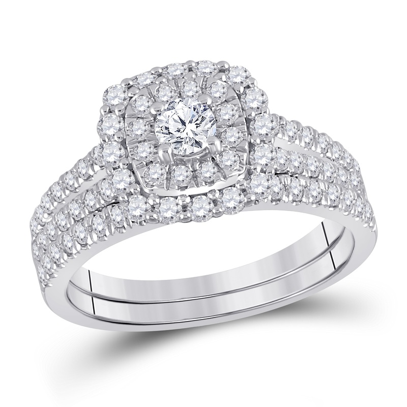 10kt White Gold Round Diamond Bridal Wedding Ring Band Set 1 Cttw