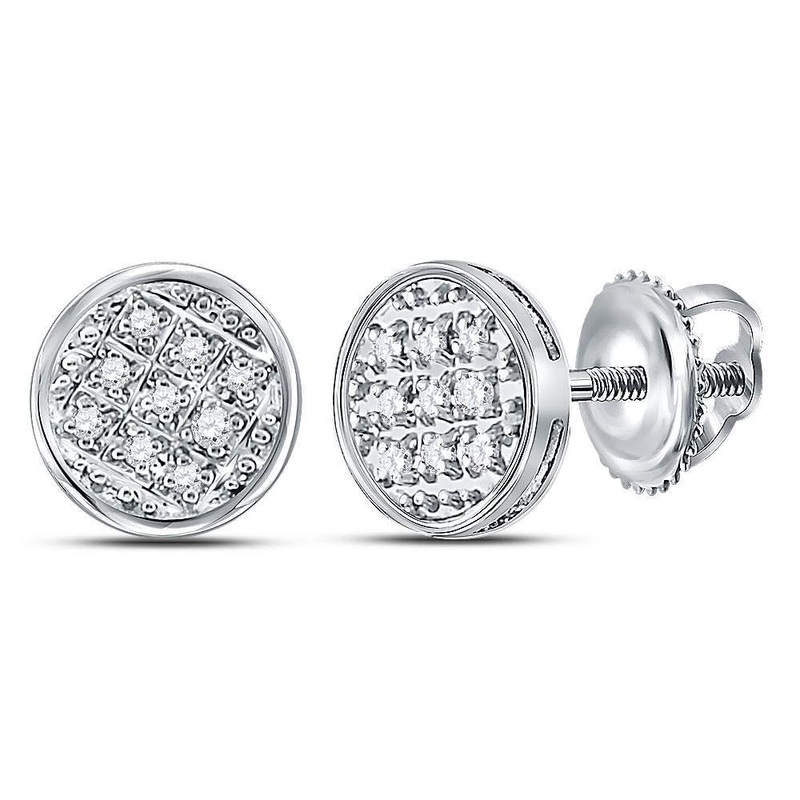10kt White Gold Round Diamond Circle Cluster Stud Earrings 1/20 Cttw