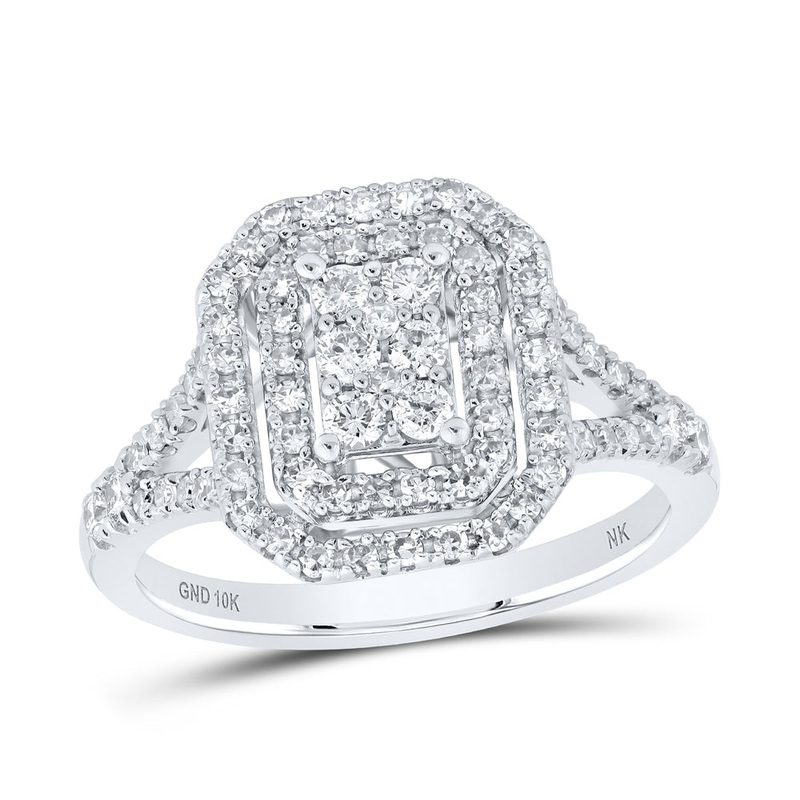 10kt White Gold Round Diamond Cluster Bridal Wedding Engagement Ring 3/4 Cttw