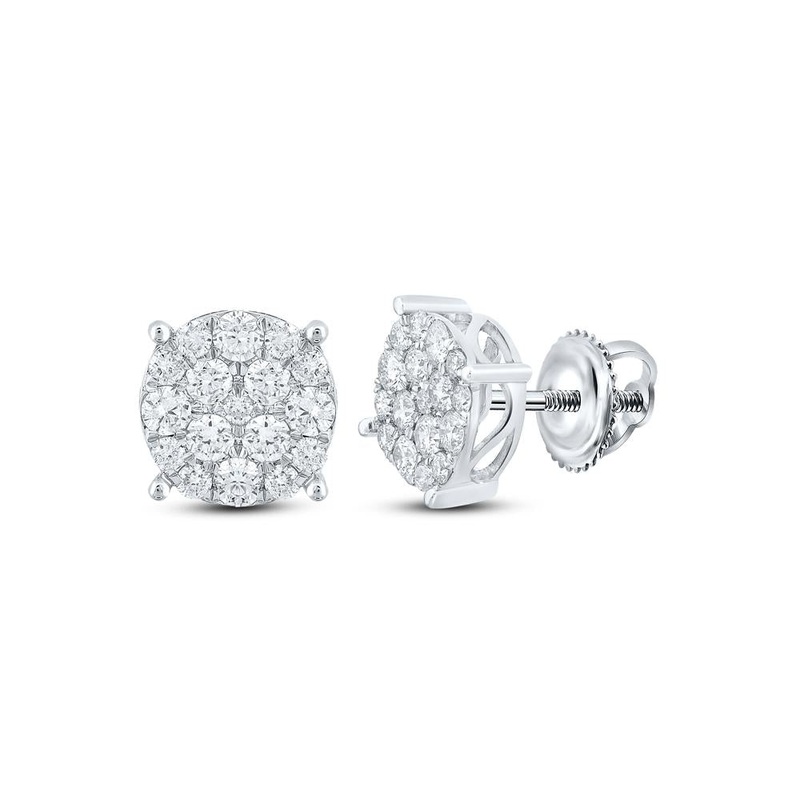 10kt White Gold Round Diamond Cluster Earrings 1 Cttw