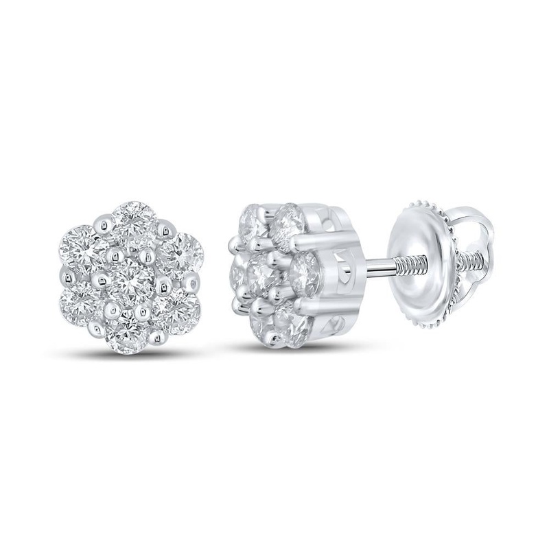 10kt White Gold Round Diamond Flower Cluster Earrings 1/4 Cttw