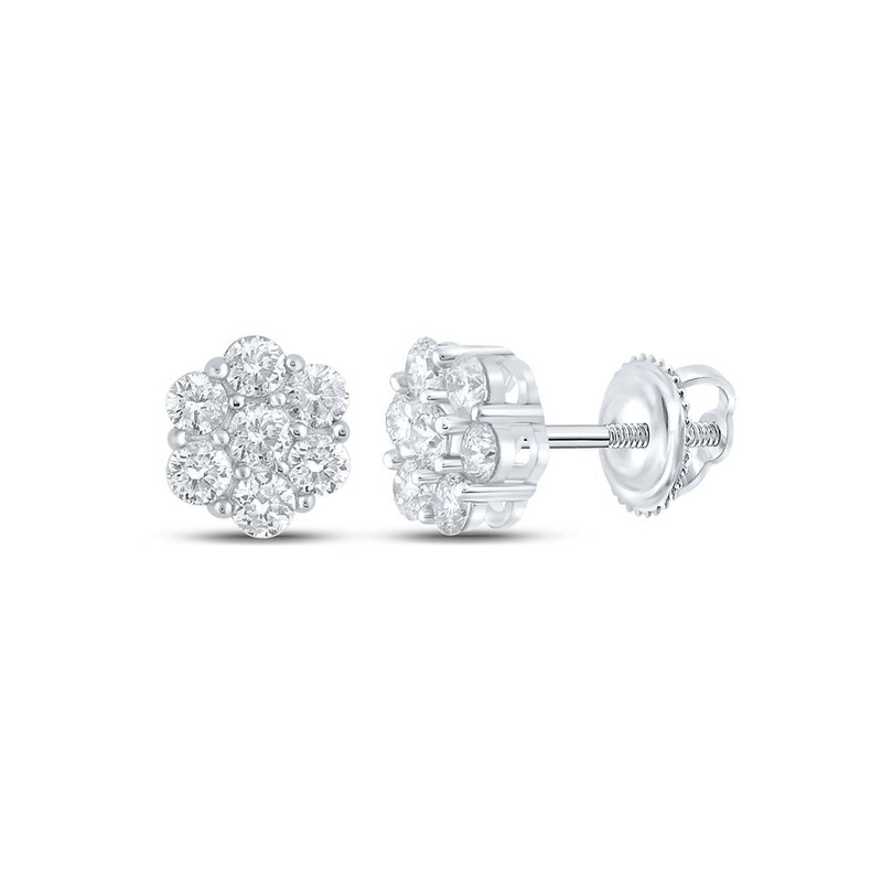 10kt White Gold Round Diamond Flower Cluster Earrings 5/8 Cttw