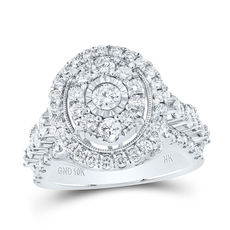 10kt White Gold Round Diamond Oval Bridal Wedding Engagement Ring 1-5/8 Cttw