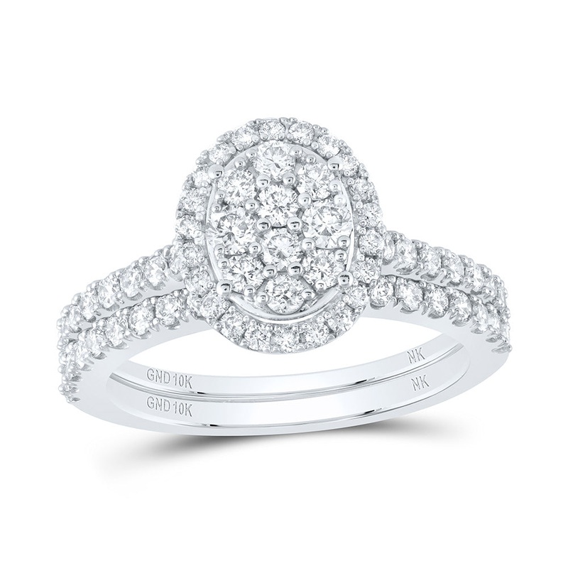 10kt White Gold Round Diamond Oval Bridal Wedding Ring Band Set 1 Cttw