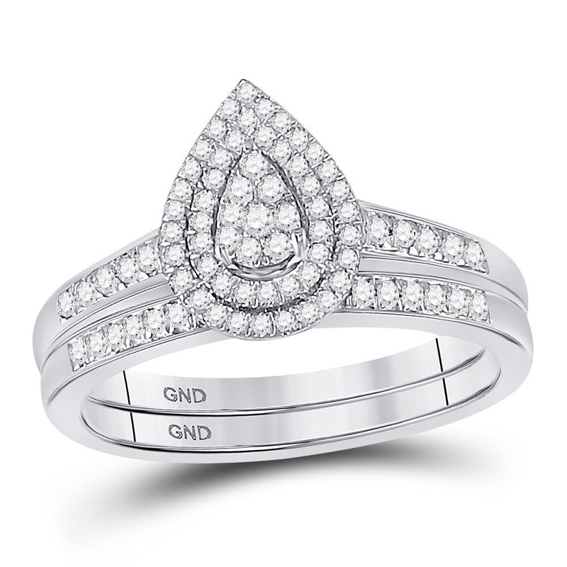 10kt White Gold Round Diamond Pear-shape Bridal Wedding Ring Band Set 1/3 Cttw