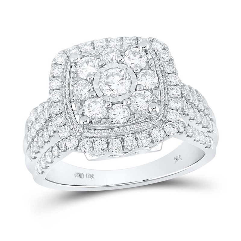 10kt White Gold Round Diamond Square Bridal Wedding Engagement Ring 1-1/2 Cttw