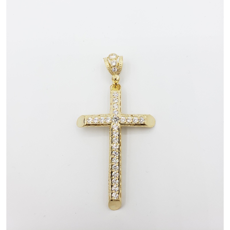 Handcrafted with precise detail, High Quality, 14K Gold Bubble CrossPendant with Cubic Zirconia Stones.