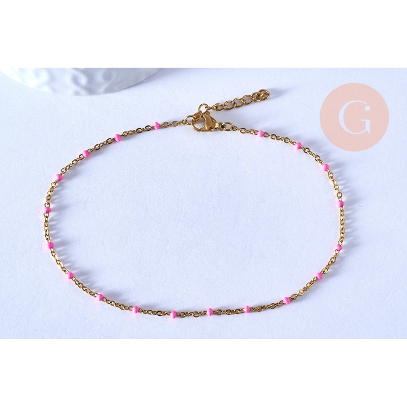 14k gold plated steel anklet, dark pink resin, gold chain, fine chain bracelet, 1.5-2mm, 23cm, x1 G3745