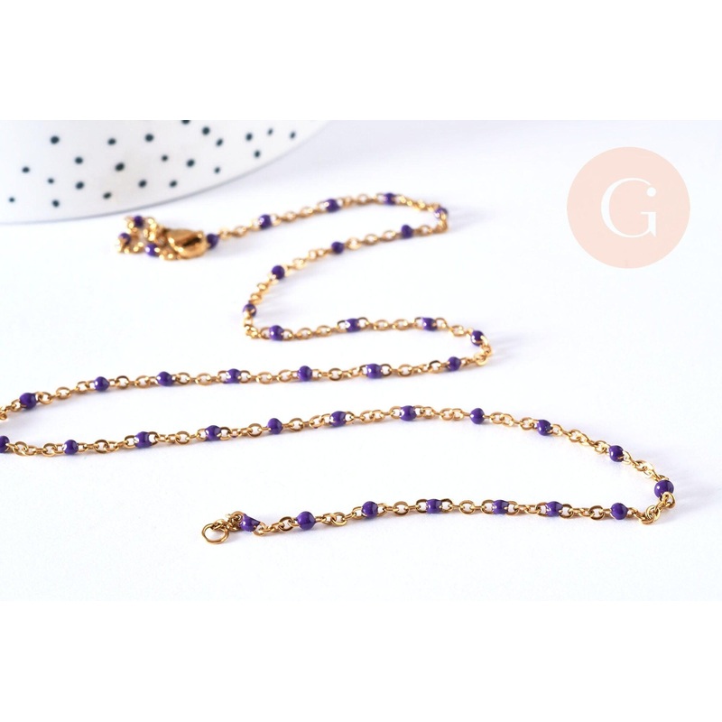 Bring a touch of mystery and elegance to your DIY creations with this 14K gold-plated stainless steel bracelet or necklace , adorned with a deep purple resin . Its vibrant color pairs wonderfully with gold for a chic and modern look. Available in 20.5 cm b
