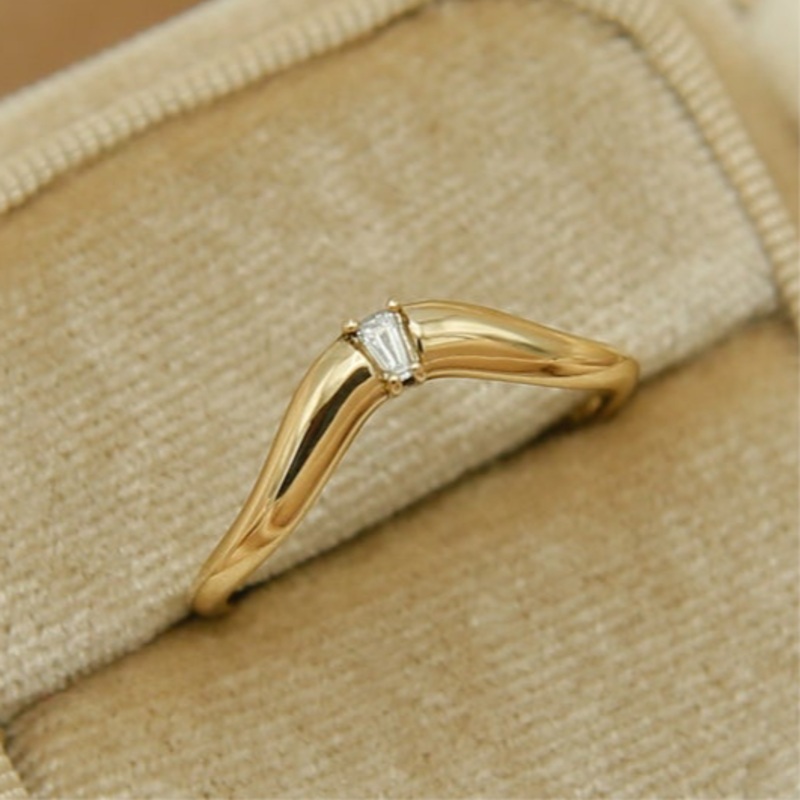 Our in-house designer, Nina Palacio, has beautifully brought this ring to life. Its slight contouring wave of 14k yellow gold and frosted diamond set at its center are sure to make a great addition to any stack or stand-alone beauty.