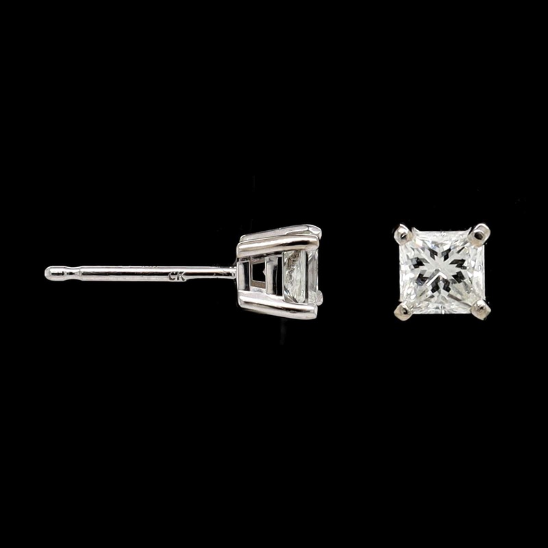 14K White Gold Estate Diamond Stud EarringsThe earrings are set with two princess cutdiamondsDiamonds are approx. .36cttw., I-J/SI2.