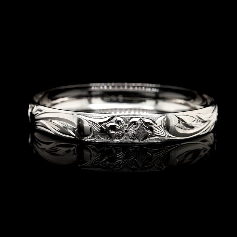 - 14K White Gold Estate Floral Engraved Bangle Bracelet