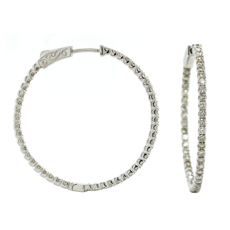 14K White Gold Inside Outside Diamond Hoop Earrings