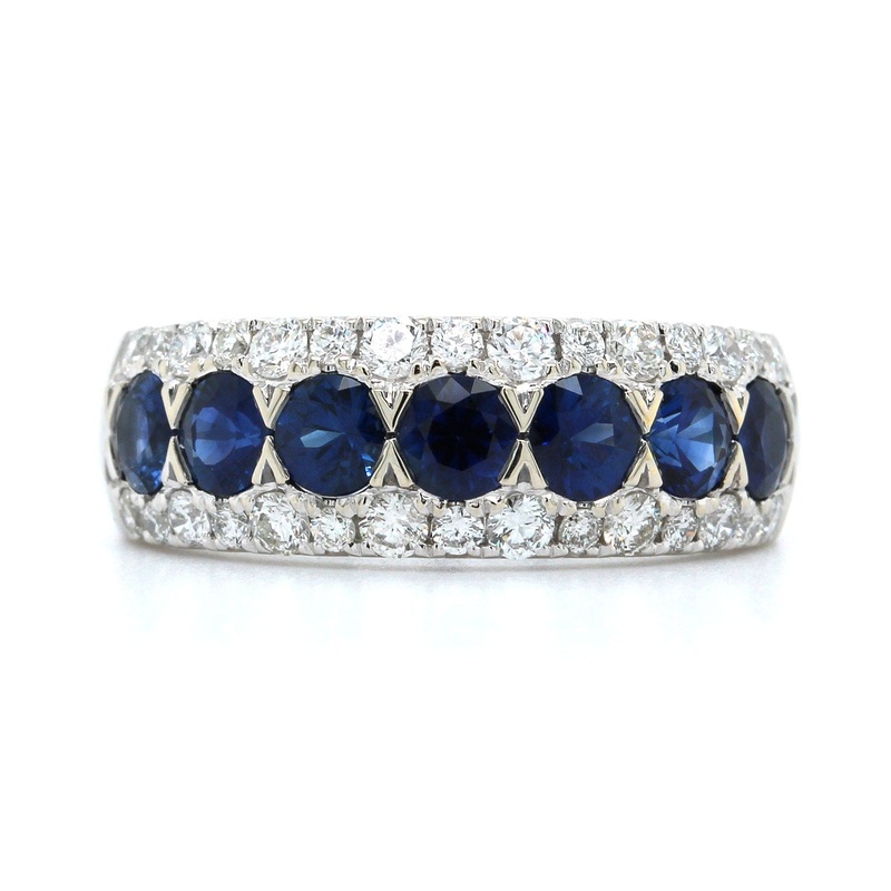 14k white goldSapphires approx. 1.53ctw.Diamonds approx. .60ctw., GH/SISize 6.5Can be ordered in different metal and sizes (prices may vary).