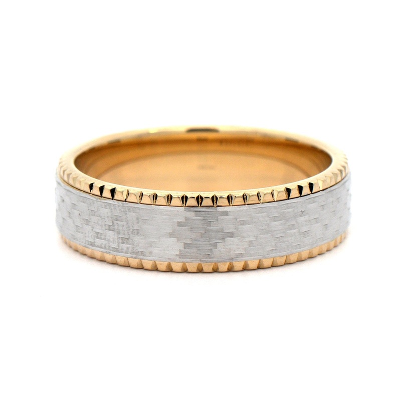 14k yellow and white gold heritage band with a textured center and grooved edges.14k yellow and white gold6mmCan be ordered in different metal and sizes (prices may vary)