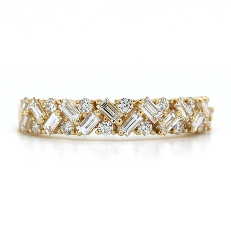14K Yellow Gold Baguette and Round Diamond Band