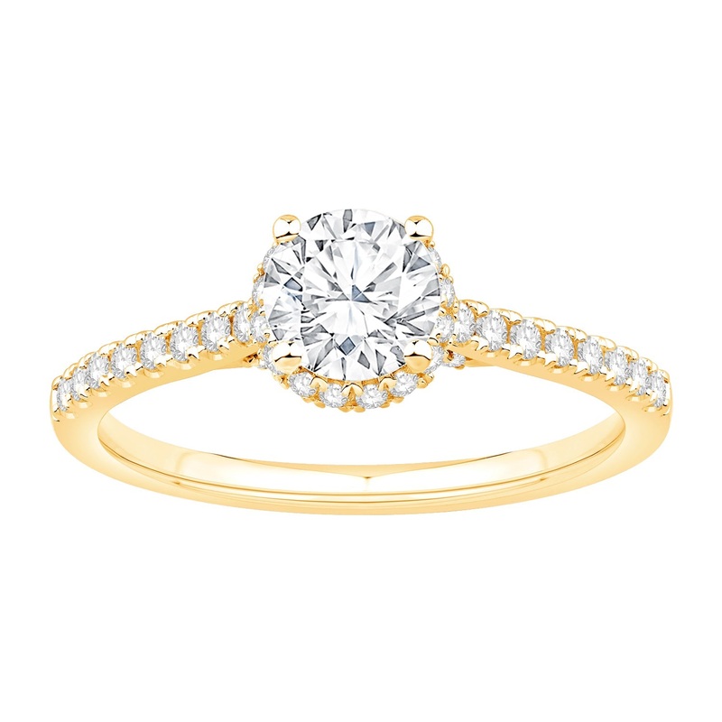 1.13ctw 14K Yellow Gold Diamond Oriana Engagement Ring Set With One Round Brilliant Cut Center Diamond 3/4ct And 44 Round Full Cut Side Diamonds In A Hidden Halo, Diamond Line, Peek-A-Boo Hidden Chevron Design For A Total Ring Diamond Weight Of 1.13ctw