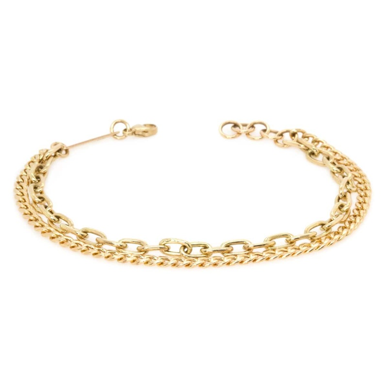 14K Yellow Gold Double Link Chain Bracelet
