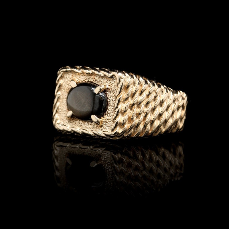 14K Yellow Gold Estate Black Star Sapphire Ring