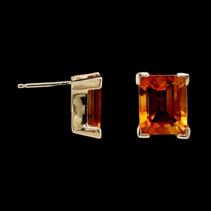 - The earrings are set with two emerald cutcitrines