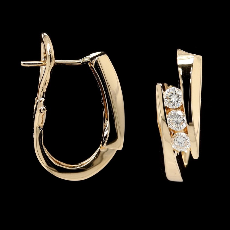 • The earrings are half hoops set with six full cut diamonds, approx. .60cttw., H-I/SI
