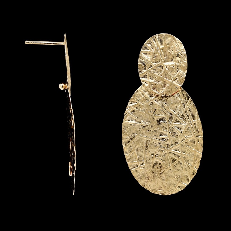 - 14K Yellow Gold Textured Oval Drop Earrings