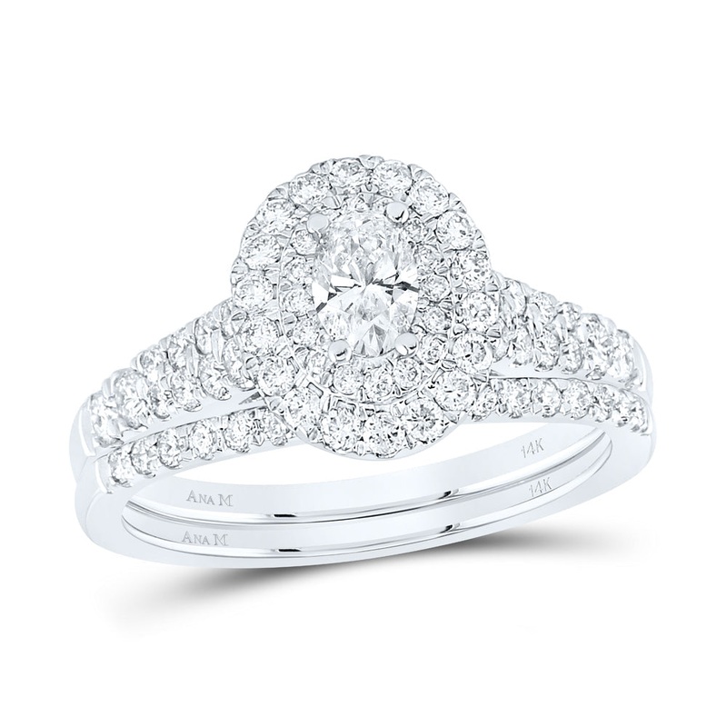 14kt White Gold Oval Diamond Halo Bridal Wedding Ring Band Set 1 Cttw