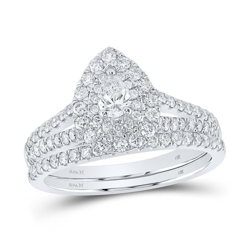 14kt White Gold Pear Diamond Halo Bridal Wedding Ring Band Set 1 Cttw