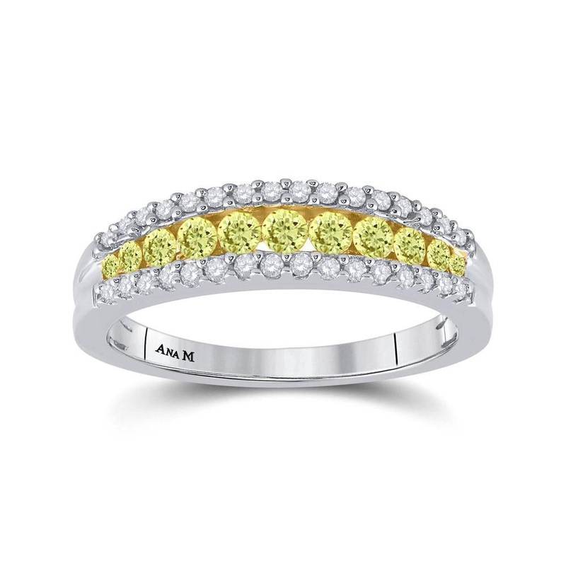 14kt White Gold Womens Round Yellow Diamond Band Ring 1/2 Cttw