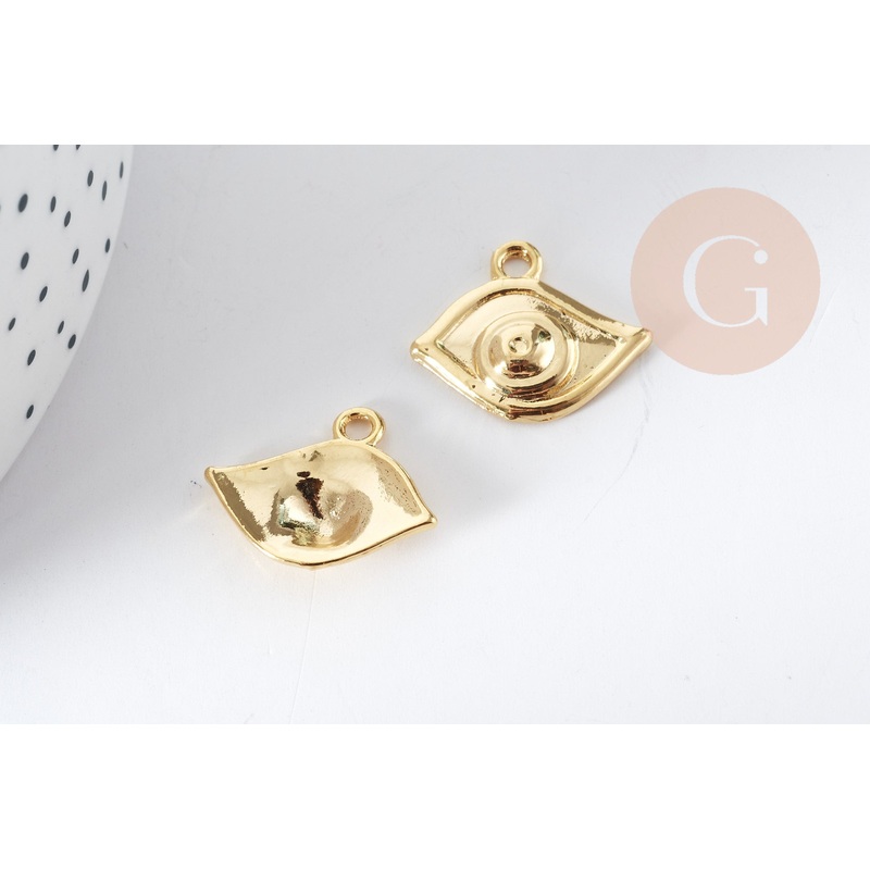 This 16K gold-plated Zamac protective eye pendant is a powerful symbol of protection and luck. Its refined design and gold finish make it a perfect element for mystical and trendy jewelry creations. It can be used alone for a minimalist necklace or integra
