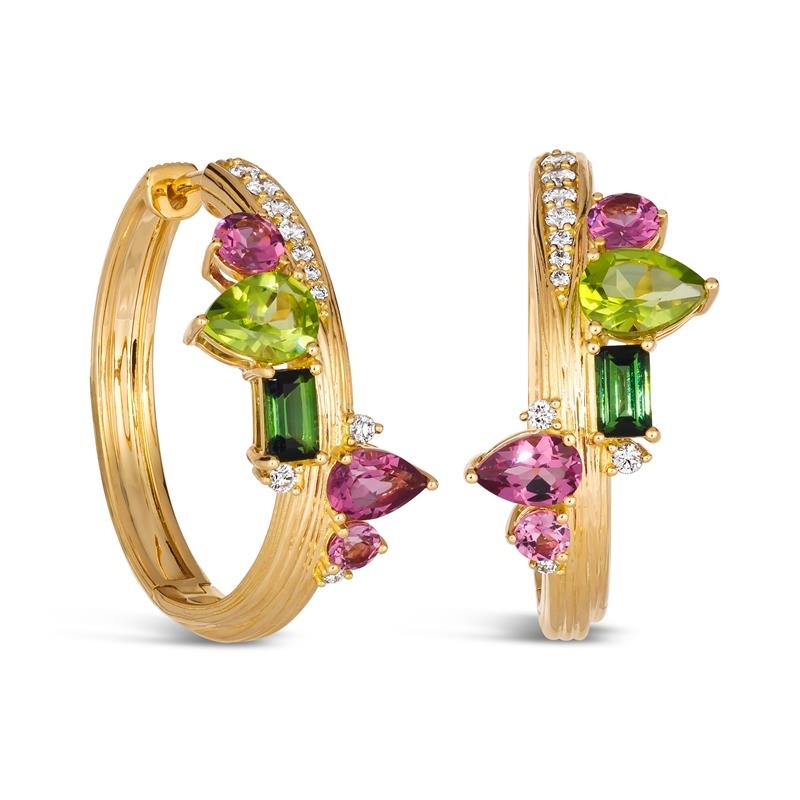 18k Amazonia (buriti) Yellow Gold Earring With 0.33 Cts Vs-Gh Diamonds And Tourmaline And Peridot And Garnet