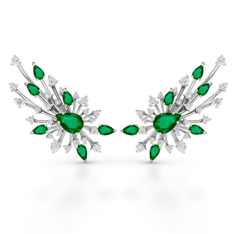 18k Luminus White Gold Earring With 1.59 Cts Vs-Gh Diamonds And Emerald