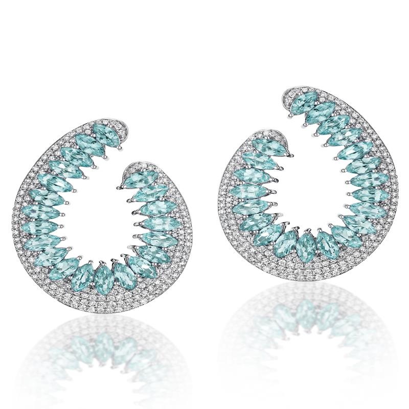 18k Mirage White Gold Earring With 1.81 Cts Vs-Gh Diamonds And Aquamarine