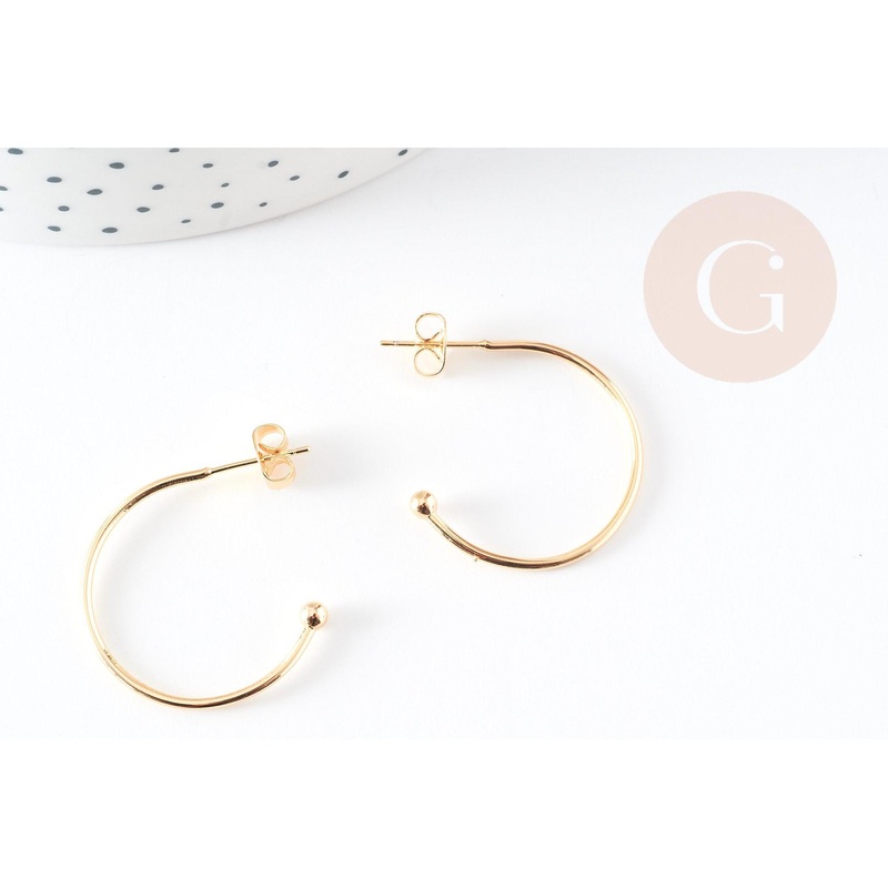 a set of 2 half-creole stud earrings in 18K gold-plated brass to create your own earrings. To personalize in a few minutes with pearls, seed beads etc... Diameter: 28mm Width: 26mm Thickness 3mm Shank: 0.7mm Suggestion of presentation, non-contractual phot