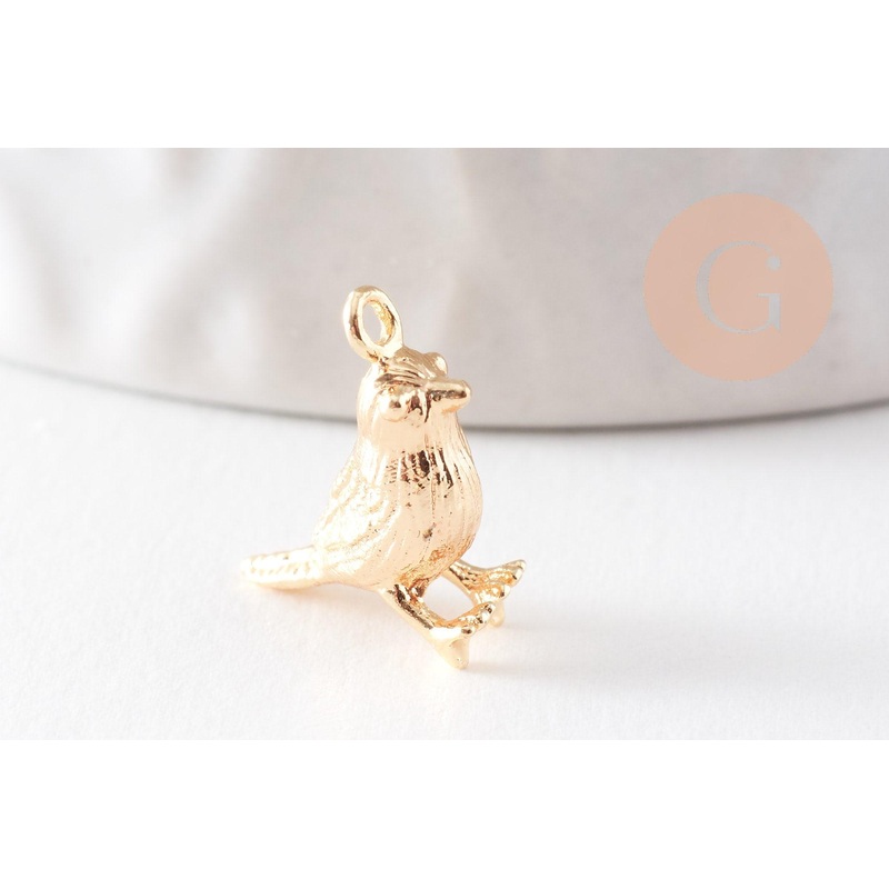 18K gold-plated brass bird pendant 12.5mm, 18K gold-plated pendant, animal jewelry creation, x2 (G10046)