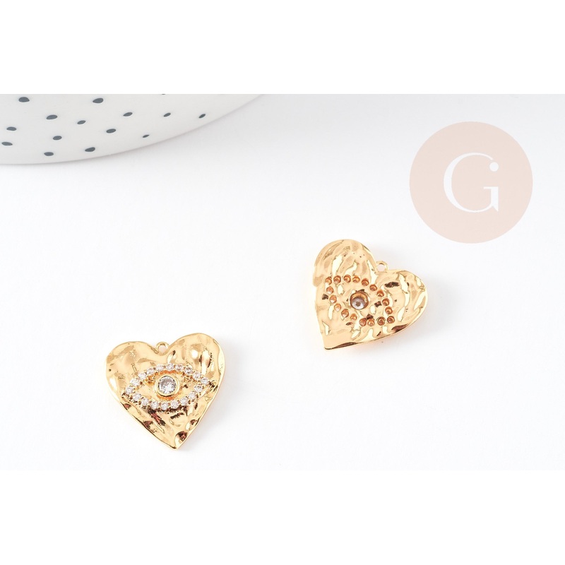 To make magnificent necklaces, earrings and bracelets, adopt this cute heart with its protective eye. Dimensions Length: 17.6mm Width: 17mm Thickness: 3mm Hole: 1.4mm Sold individually. 18k gilding This timeless pendant can be worn on one of our gold-plate