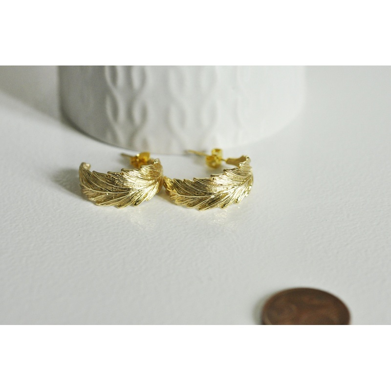 18k gold-plated brass hoop earrings with a timeless leaf motif
