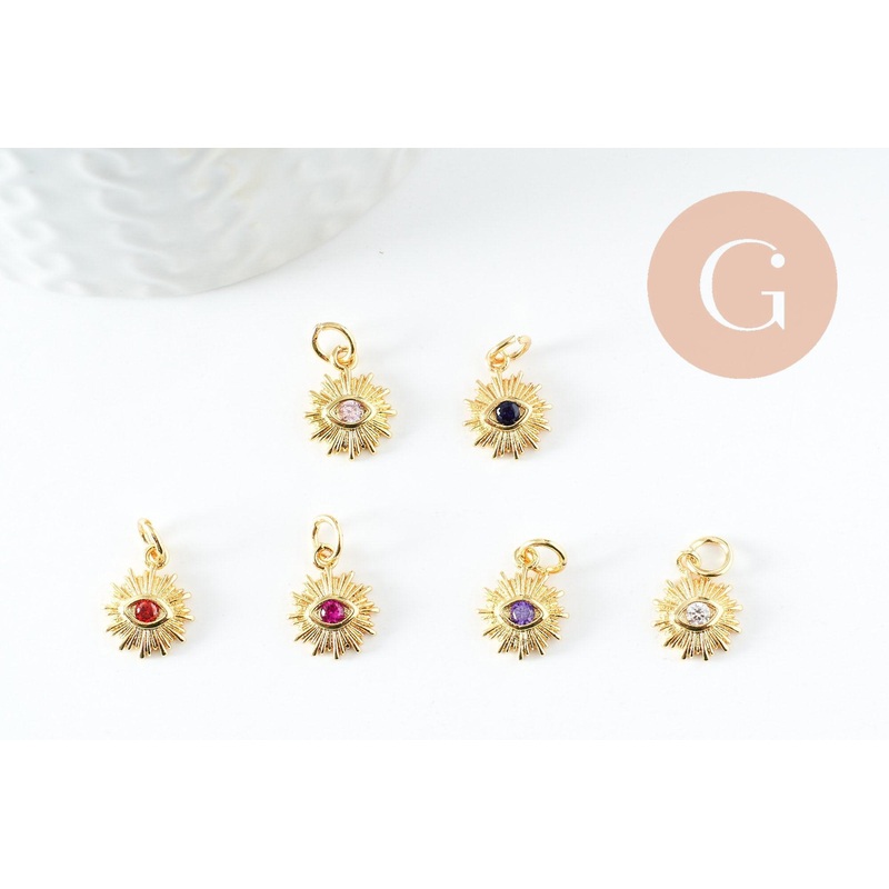 18k gold brass zircon sun pendant, crystal pendant for creating lucky jewelry for women in zircon, 12.5mm, each