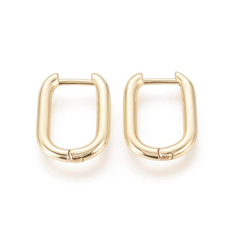 Smooth, U-shaped, gold-plated brass hoop earrings . Minimalist and resolutely modern, you can wear them every day. Sold in pairs Creoles : Length: 17.5mm Stem: 1mm Width: 13mm Thickness: 2mm Delivered in their cardboard gift box Presentation suggestion, no
